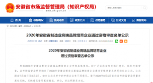 根据2020年安徽省制造业高端品牌培育企业申报具体要求,经广泛征求省有关部门意见,组织专家审查,省市场监管局研究确定了2020年安徽省制造业高端品牌培育企业通过资格审查名单现向社会公示。科希曼通过资格审查列入名单。