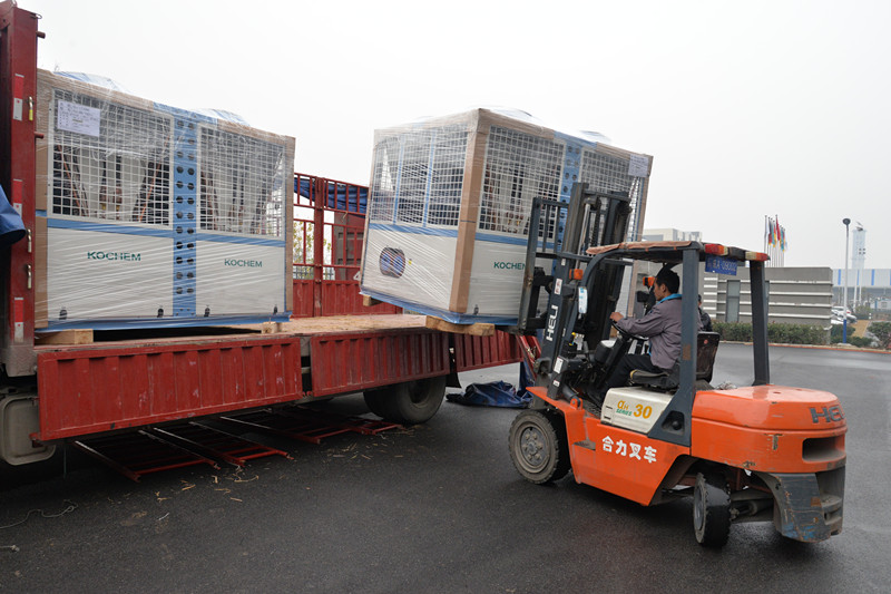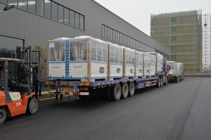 开门鸿运预兆丰年,2020年的第二个工作日,科希曼品牌就迎来了新年的第一笔发货单,为新年的开篇带来了好运。首批发货的是14台60P机和空气能热泵6台20P机,在工作人员的安排下,一台台机器有条不紊的被运上车送往目的地。